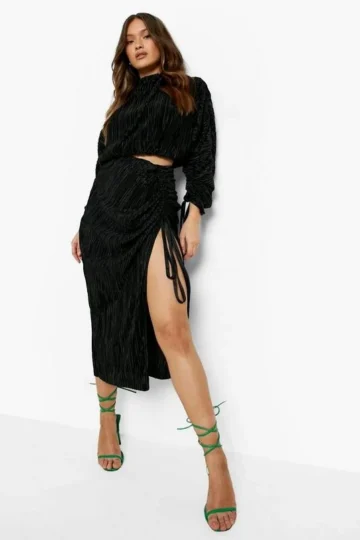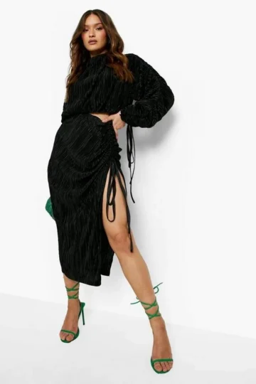 BOOHOO Plisse Ruched Side Midiaxi Skirt