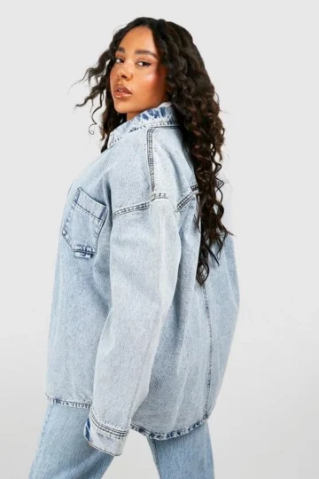 BOOHOO Plus Acid Wash Denim Shacket