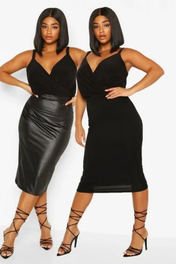 BOOHOO Plus 2 Pack Faux Leather And Jersey Knit Midi Skirt