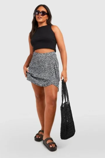 BOOHOO Plus Dalmatian Print Ruffle Skater Skirt