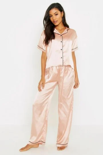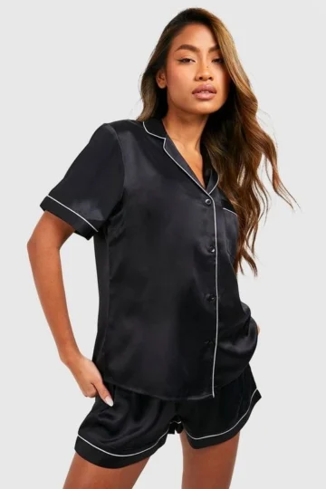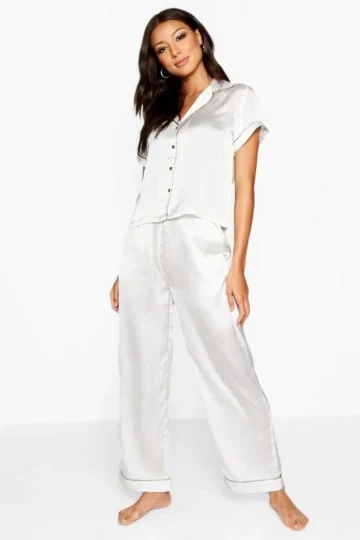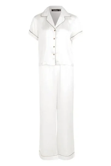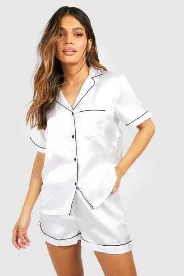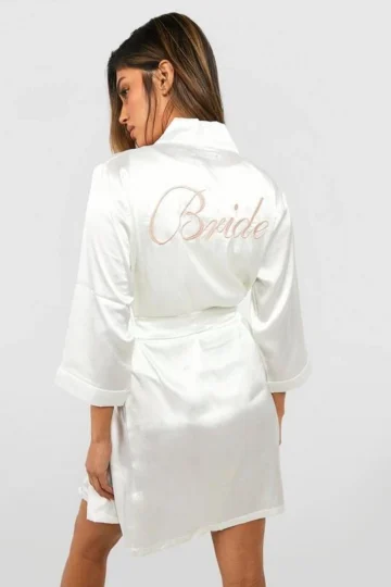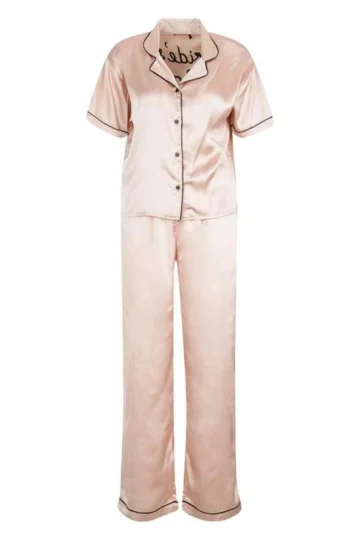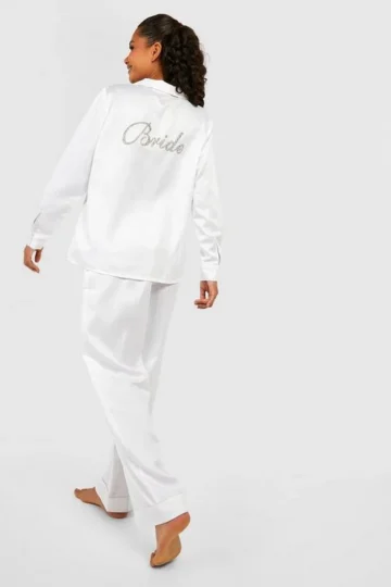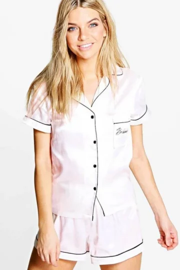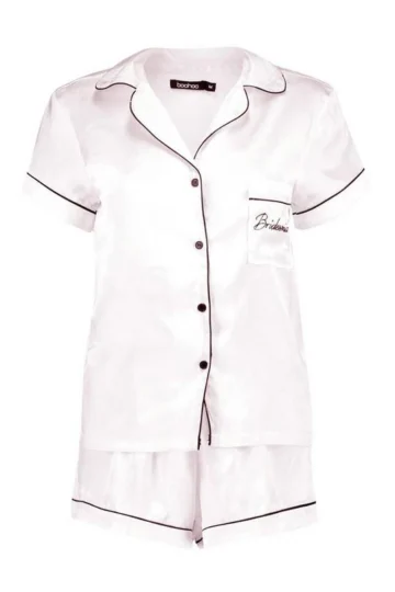 BOOHOO Bride Satin Embroidered Pj Short Set