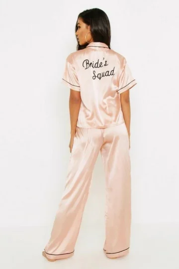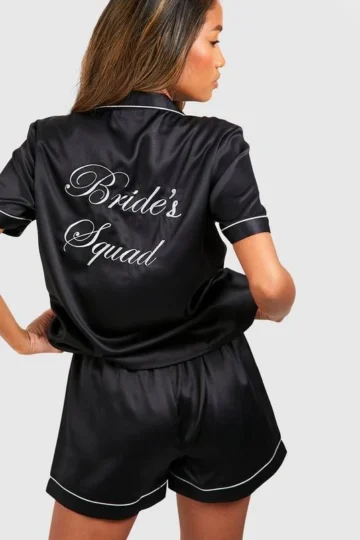 BOOHOO Bride Squad Satin Embroidered Pj Short Set