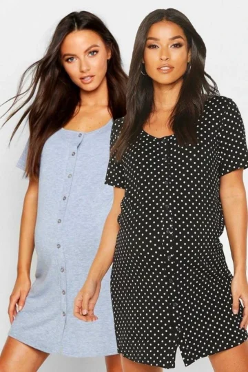BOOHOO Maternity 2Pk Button Front Nightgown