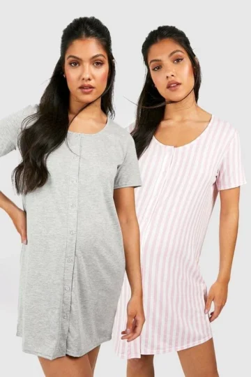 BOOHOO Maternity 2 Pack Stripe Button Front Nightgown
