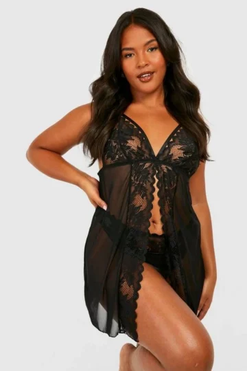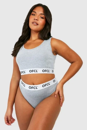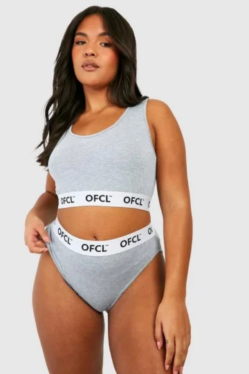 BOOHOO Plus Official Jersey Knit Scoop Bralette & Brief Set