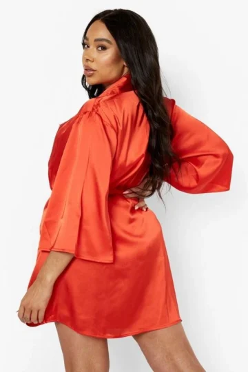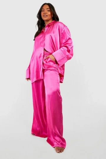 BOOHOO Plus Satin Oversized Pajama Shirt & Pants Set