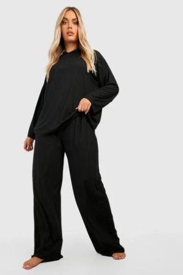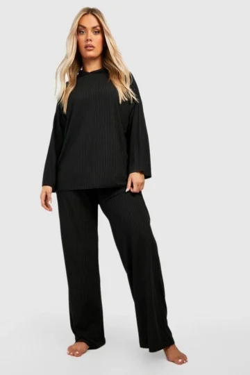 BOOHOO Plus Soft Rib Hooded Lounge Set