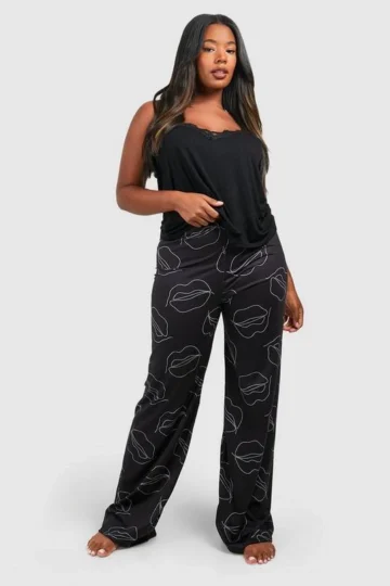 BOOHOO Plus Peached Jersey Wide Leg Pj Trouser