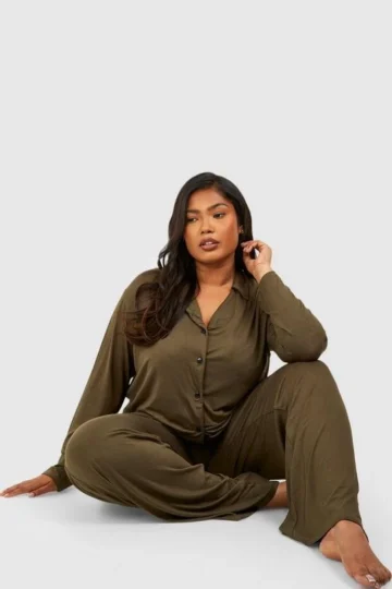 BOOHOO Plus Peached Jersey Long Sleeve Button Pj Shirt