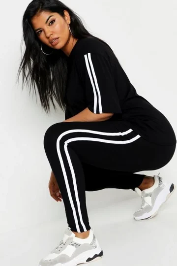BOOHOO Plus Stripe Short Sleeve Loungewear Set
