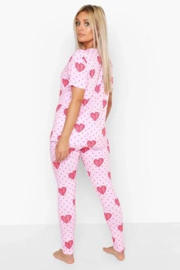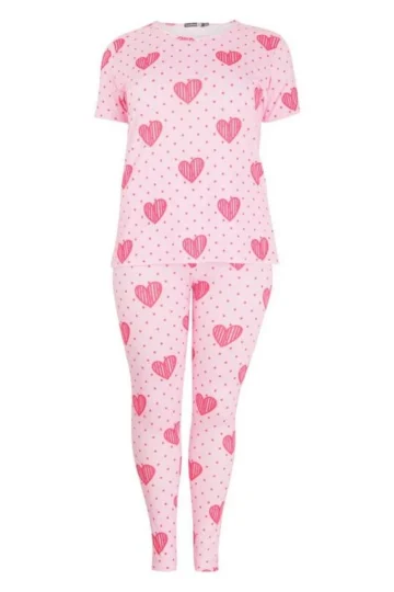 BOOHOO Plus Polka Dot Heart Print T Shirt & Pants Pajama Set