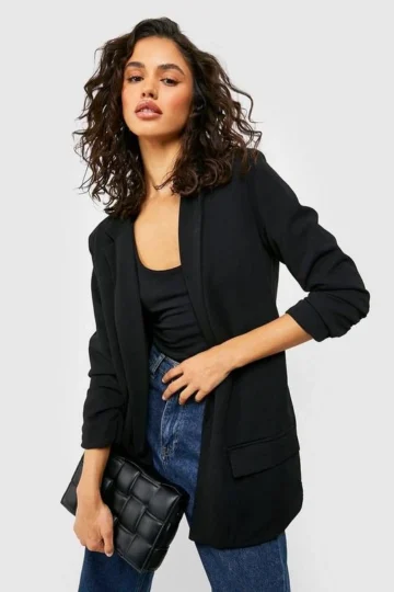BOOHOO Ruched Sleeve Tailored Blazer