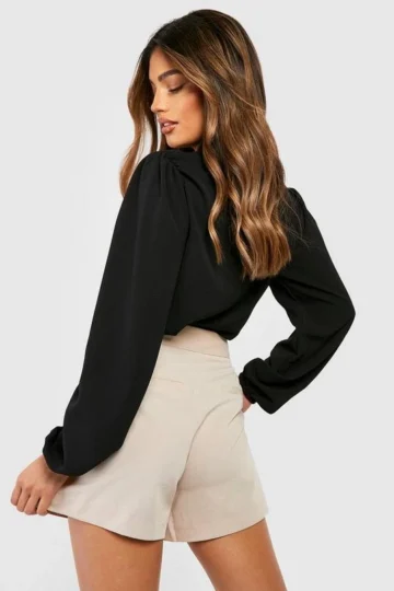 BOOHOO Pussybow Button Through Puff Sleeve Blouse