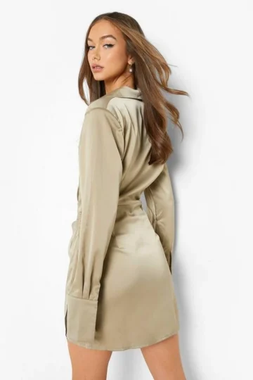 BOOHOO Premium Satin Shoulder Pad Shirt Dress