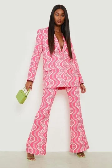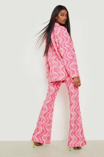 BOOHOO Retro Print Fit & Flare Pants