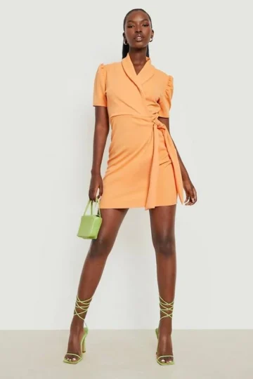 BOOHOO Puff Sleeve Bow Side Blazer Dress