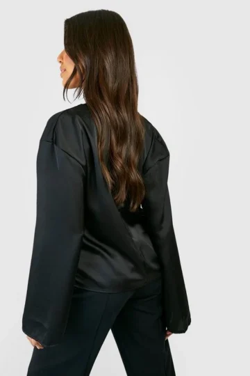BOOHOO Ruched Sleeve Plunge Lapel Blazer