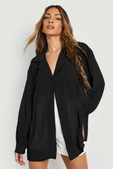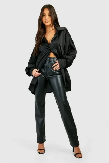 BOOHOO Satin Longline Relaxed Fit Shirt