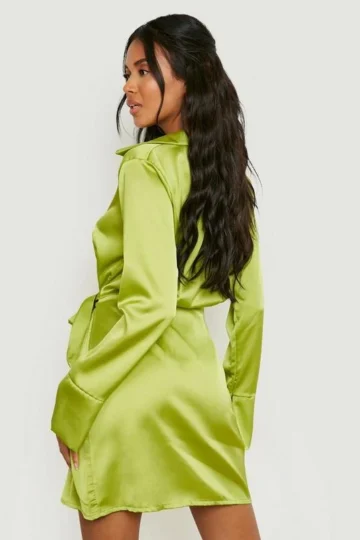 BOOHOO Satin Drape Tie Side Shirt Dress