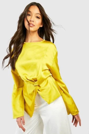 BOOHOO Satin Knot Detail Flared Sleeve Blouse