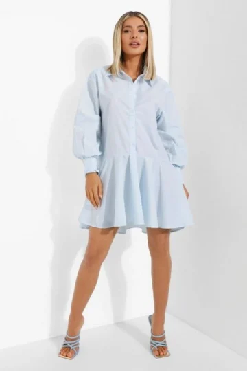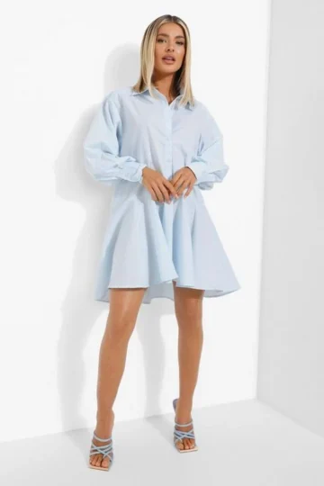 BOOHOO Oversized Cotton Poplin Smock Shirt Dress