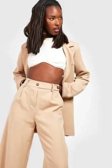 BOOHOO Marl Wide Leg Slouchy Dress Pants