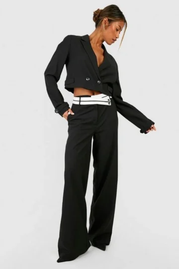 BOOHOO Marl Contrast Waistband Wide Leg Dress Pants