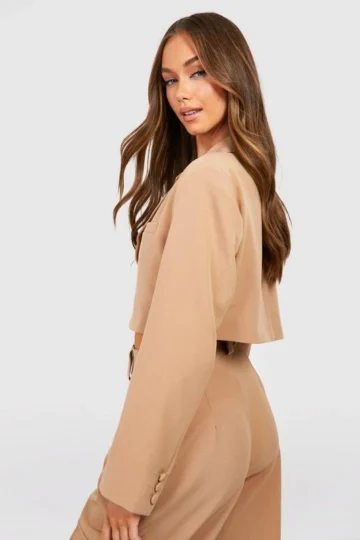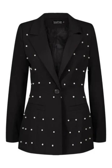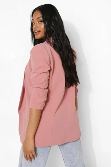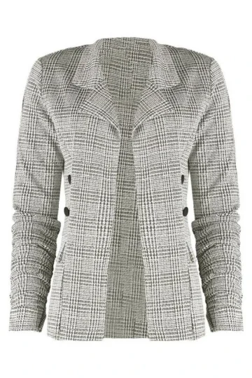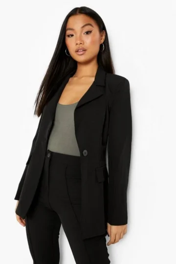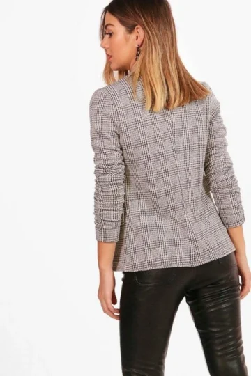 BOOHOO Petite Flannel Button Sleeve Blazer