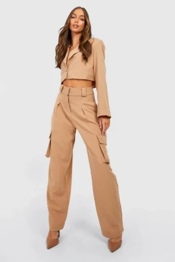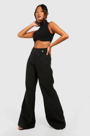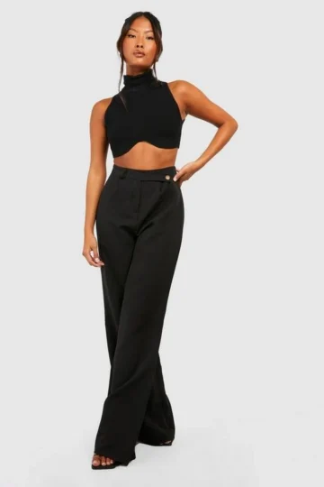 BOOHOO Petite Woven Asymmetric Waistband Pants