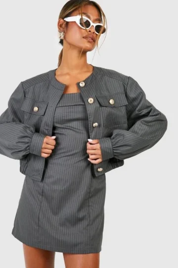 BOOHOO Pinstripe Bandeau Tailored Mini Dress