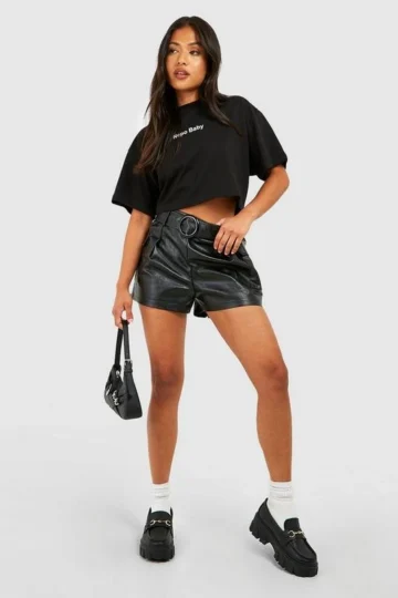 BOOHOO Petite Faux Leather Belted Utility Pocket Shorts
