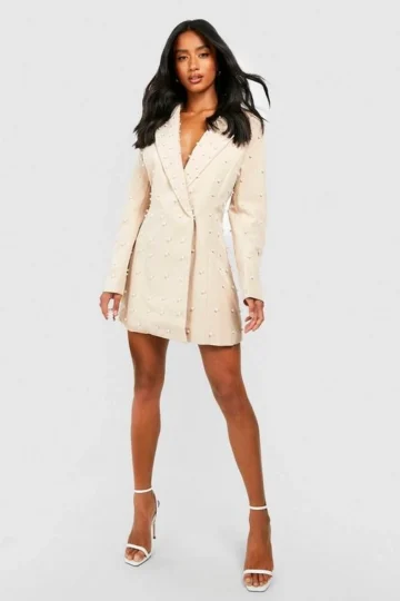 BOOHOO Petite Puff Sleeve Blazer Dress