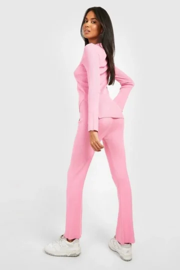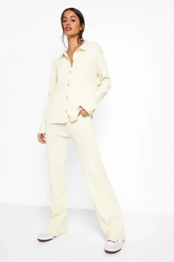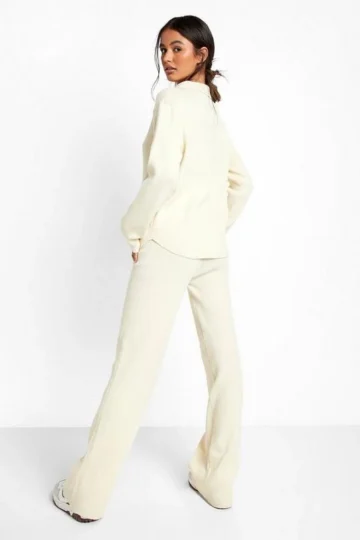 BOOHOO Rib Knitted Relaxed Wide Leg Two-Piece