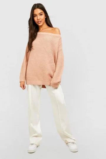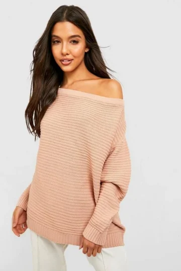 BOOHOO Ripple Stitch Boat Neck Sweater