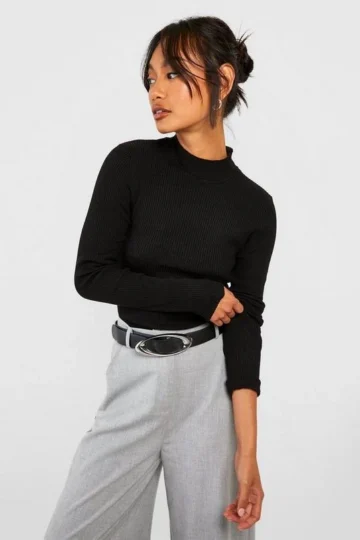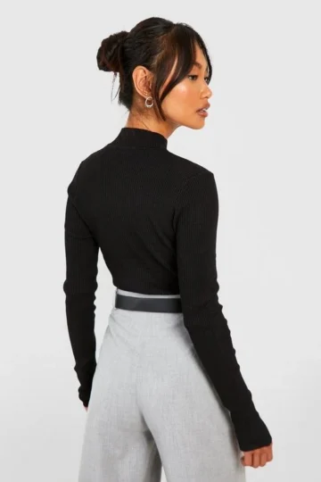 BOOHOO Rib Knit Turtle Neck Top