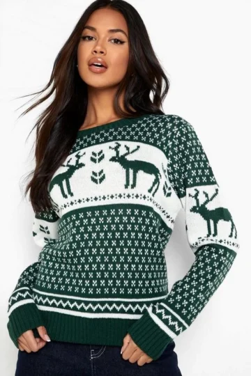 BOOHOO Snowflake And Reindeer Knitted Christmas Sweater