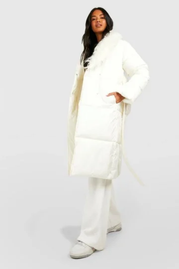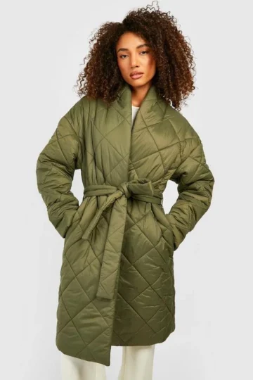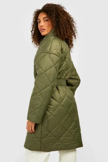 BOOHOO Tall Diamond Quilt Belted Duvet Puffer Jacket