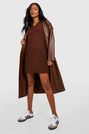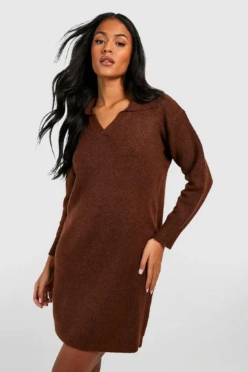 BOOHOO Tall Soft Knit Collared Sweater Dress