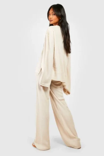 BOOHOO V Neck Wide Leg Knitted Two-Piece