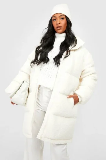BOOHOO Tall Teddy Faux Fur Paneled Puffer