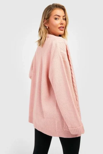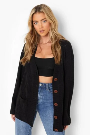 BOOHOO Cable Boyfriend Button Up Cardigan