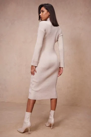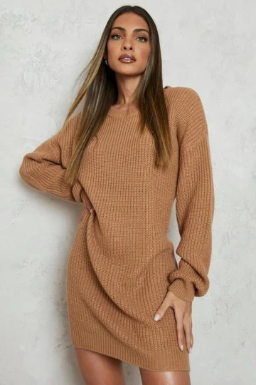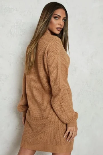 BOOHOO Chunky Rib Funnel Neck Sweater Dress