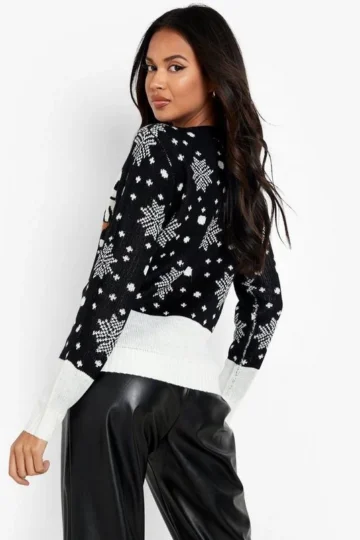 BOOHOO Contrast Hem Reindeer Christmas Sweater