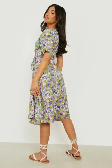 BOOHOO Petite Mixed Floral Wrap Midi Dress