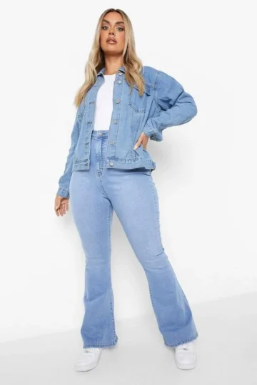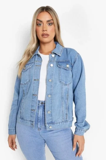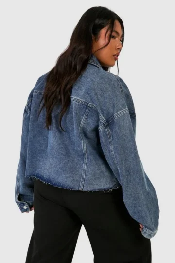 BOOHOO Plus Washed Dipped Hem Denim Skirt