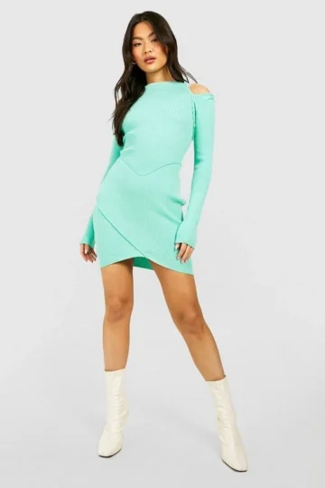 BOOHOO Premium Rib Knitted Contour Mini Dress