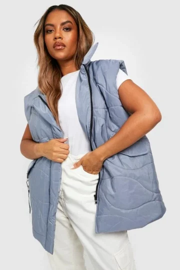 BOOHOO Plus Wave Quilted Funnel Neck Utility Vest