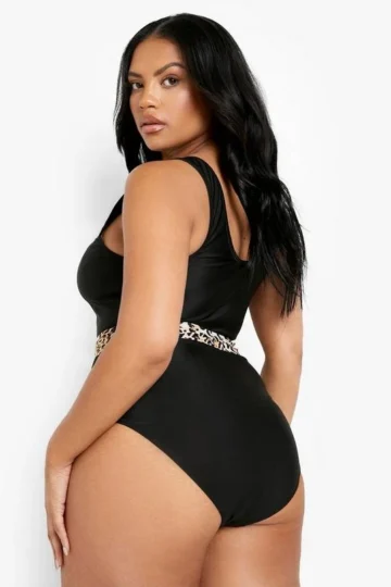 BOOHOO Plus Leopard Contrast Cut Out Swimsuit