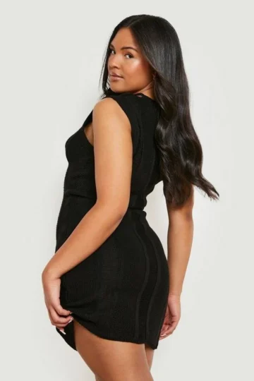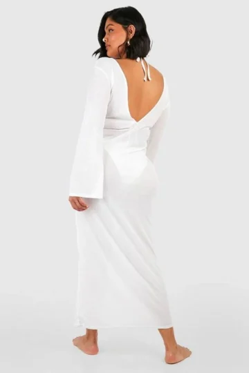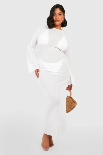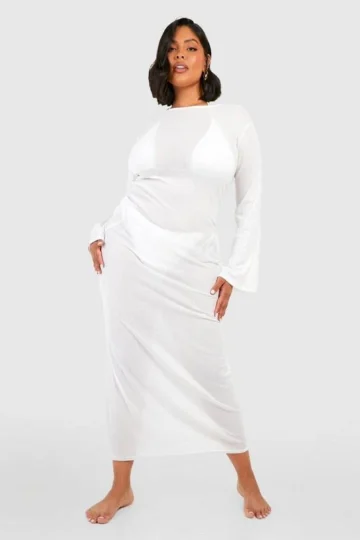BOOHOO Plus Knitted Jersey Knit Open Back Maxi Beach Dress