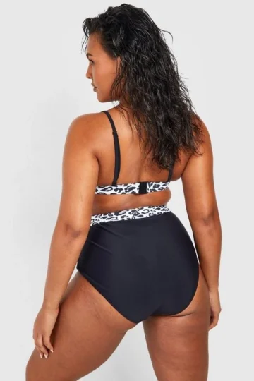 BOOHOO Plus Leopard Contrast Tummy Control Bikini